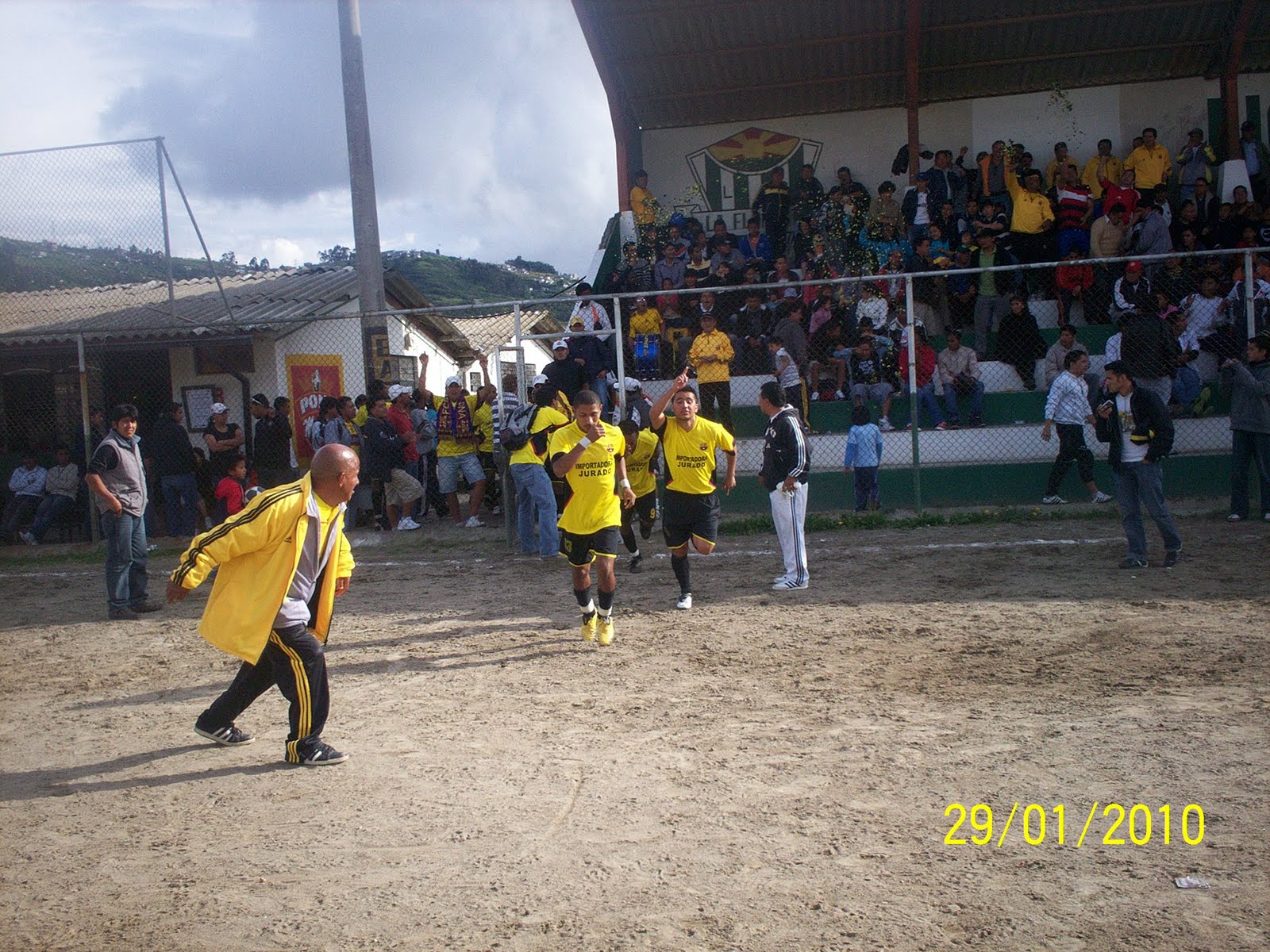 Paúl Chamorro (Bayern) y Santiago Cevallos (Barcelona ) , capitanes de los Clubes finalistas del Campeonato oficial de Liga La Floresta , posan junto al arbitro principal de la terna que condujo en buena forma el desarrollo del encuentro que se disputó con el Balón ¨GOLTY¨Profesional .